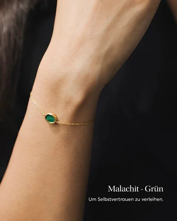 Die Kraft der Steine - Le Pouvoir des Pierres verführt Dich mit einem romantischen und warmen Duft aus Rosen und Lavendel, kombiniert mit rosa Beeren und sinnlichem Sandelholz. Ein weiblicher Duft, welcher Dich sanft umhüllt und für eine gemütliche Atmosphäre sorgt. Doch damit nicht genug, denn im Inneren der Kerze befindet sich ein mit 24 Karat vergoldetes Armband, verziert mit einem natürlichen Edelstein Deiner Wahl. Dieser Glücksbringer aus der Steinheilkunde besitzt eine bestimme Wirkung, je nachdem für welchen Edelstein Du dich entscheidest. In dieser Kerze befindet sich ein vergoldetes Armband mit dem Edelstein Malachit, welcher Selbstvertrauen verleiht! Folgende Edelsteine kannst Du auf deinem Armband finden: Perlmutt : Weiß, um Wohlbefinden und Ruhe zu bringenAmazonit : Türkis, um negative Gedanken zu vertreibenOnyx : Schwarz, um Stabilität zu finden und Selbstkontrolle zu bewahrenMalachit : Grün, um Selbstvertrauen zu verleihenLapislazuli : Blau, um das Selbstvertrauen zu stärken und die Kommunikation zu fördernAmethyst : Violett, um den Geist zu beruhigen und die Intuition zu stärkenTigerauge : Braun, um Ängste zu überwinden und Risiken zu wagen My Jolie Candle - Die Schmuckkerze mit Überraschungseffekt. Die exklusiven Duftkerzen von My Jolie Candle sind etwas ganz Besonderes. Sie verwöhnen Dich nicht nur mit einem tollen und raumfüllenden Duft, sondern verbergen noch ein wunderschönes Schmuckstück, welches sich beim Abbrennen der Duftkerze offenbart. Dabei kannst Du zwischen Armband und Halskette wählen und je nach enthaltenem Schmuck, Dich auch für einen bestimmten Stein entscheiden, mit welchem das Schmuckstück verziert ist. Die Duftkerzen werden ausschließlich aus qualitativ hochwertigen Rohmaterialien gefertigt. So enthalten sie eine Wachsmischung aus Soja- Mango- und Kokosnusswachs, auf Paraffinwachs wird komplett verzichtet. Der Docht ist handgefertigt und besteht aus 100% Baumwolle, ohne Bleikern. Das Kerzenglas wird aus recyceltem Glas hergestellt und die Duftöle werden in Grasse (Frankreich) gefertigt. Die Schmückstücke in den Kerzen sind allesamt handgefertigt und bestehen aus 925er Sterlingsilber, rhodiniertem Metall oder vergoldetem Metall. Das Armband besitzt eine Einheitsgröße und kann von 14,5cm bis zu 19cm verstellt werden. Auch die Halsketten können verstellt und angepasst werden und besitzen verschiedene Längen: kurz (38 bis 44 cm), mittel (46 bis 52 cm) und lang (56 bis 62 cm). Welche Größe Du in Deiner My Jolie Candle finden wirst, entscheidet der Zufall. Lass Dich also überraschen!