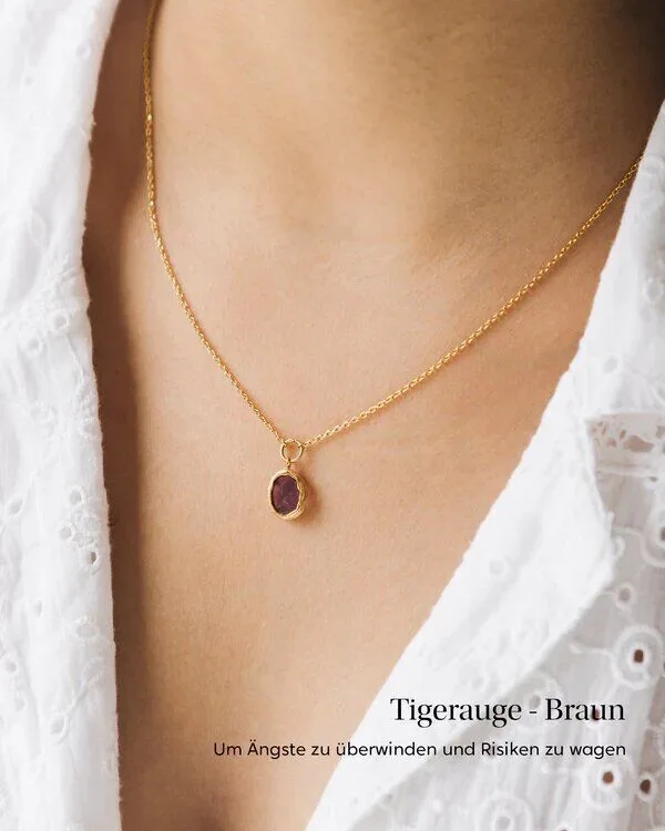 Die Kraft der Steine - Le Pouvoir des Pierres verführt Dich mit einem romantischen und warmen Duft aus Rosen und Lavendel, kombiniert mit rosa Beeren und sinnlichem Sandelholz. Ein weiblicher Duft, welcher Dich sanft umhüllt und für eine gemütliche Atmosphäre sorgt. Doch damit nicht genug, denn im Inneren der Kerze befindet sich ein mit 24 Karat vergoldetes Armband, verziert mit einem natürlichen Edelstein Deiner Wahl. Dieser Glücksbringer aus der Steinheilkunde besitzt eine bestimme Wirkung, je nachdem für welchen Edelstein Du dich entscheidest. In dieser Kerze befindet sich eine vergoldete Halskette mit dem Edelstein Tigerauge, welcher dabei hilft, Ängste zu überwinden und Risiken einzugehen! Folgende Edelsteine kannst Du auf deinem Armband finden: Perlmutt : Weiß, um Wohlbefinden und Ruhe zu bringenAmazonit : Türkis, um negative Gedanken zu vertreibenOnyx : Schwarz, um Stabilität zu finden und Selbstkontrolle zu bewahrenMalachit : Grün, um Selbstvertrauen zu verleihenLapislazuli : Blau, um das Selbstvertrauen zu stärken und die Kommunikation zu fördernAmethyst : Violett, um den Geist zu beruhigen und die Intuition zu stärkenTigerauge : Braun, um Ängste zu überwinden und Risiken zu wagen My Jolie Candle - Die Schmuckkerze mit Überraschungseffekt. Die exklusiven Duftkerzen von My Jolie Candle sind etwas ganz Besonderes. Sie verwöhnen Dich nicht nur mit einem tollen und raumfüllenden Duft, sondern verbergen noch ein wunderschönes Schmuckstück, welches sich beim Abbrennen der Duftkerze offenbart. Dabei kannst Du zwischen Armband und Halskette wählen und je nach enthaltenem Schmuck, Dich auch für einen bestimmten Stein entscheiden, mit welchem das Schmuckstück verziert ist. Die Duftkerzen werden ausschließlich aus qualitativ hochwertigen Rohmaterialien gefertigt. So enthalten sie eine Wachsmischung aus Soja- Mango- und Kokosnusswachs, auf Paraffinwachs wird komplett verzichtet. Der Docht ist handgefertigt und besteht aus 100% Baumwolle, ohne Bleikern. Das Kerzenglas wird aus recyceltem Glas hergestellt und die Duftöle werden in Grasse (Frankreich) gefertigt. Die Schmückstücke in den Kerzen sind allesamt handgefertigt und bestehen aus 925er Sterlingsilber, rhodiniertem Metall oder vergoldetem Metall. Das Armband besitzt eine Einheitsgröße und kann von 14,5cm bis zu 19cm verstellt werden. Auch die Halsketten können verstellt und angepasst werden und besitzen verschiedene Längen: kurz (38 bis 44 cm), mittel (46 bis 52 cm) und lang (56 bis 62 cm). Welche Größe Du in Deiner My Jolie Candle finden wirst, entscheidet der Zufall. Lass Dich also überraschen!