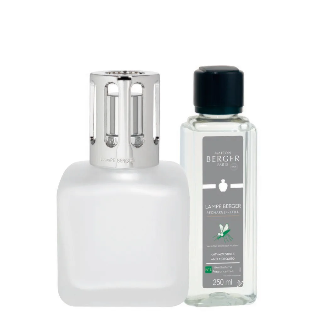 Dieser eckige Glasflacon wurde entworfen um an die Form eines Eiswürfels zu erinnern. Mit seinen abgerundeten Kanten und seinem dezenten und zeitlosen Grau passt er in nahezu jeden Einrichtungsstil. Die Lampe wird im Set mit 250 ml Aromatischer Weißer Tee in einem hochwertigen Karton mit einem katalytischen Brenner, einer Löschkappe und einem Trichter als Zubehör geliefert. Lampe Berger - Die Innovation in Sachen Luftreinigung und Beduftung. Die Lampe Berger ist hochwirksam gegen Küchen-, Haustier- und Tabakgerüche. Sie vernichtet unangenehme Gerüche und sorgt für eine angenehme Beduftung. Aromatischer weißer Tee: Der Duft Aromatischer Weißer Tee erschafft eine Illustration eines Momentes unverfälschter Gelassenheit. Kopfnoten aus Bergamotte und schwarzer Johannisbeere verbinden sich mit dem vollkommenen Duft des weißen Tees, Rose und Jasmin. In der Basis rundet ein Hauch von weißem Moschus und sattem Zedernholz diese Komposition ab. Diese Duftkomponenten verwöhnen Sie: Kopfnote: Schwarze Johannisbeere, BergamotteHerznote: Weißer Tee, Maiglöckchen, Rose, JasminBasisnote: Zedernholz, weißer Moschus Tipps: Sie können die Essenz AIR PUR zwischen der Verwendung von zwei unterschiedlichen Parfums nutzen, um den Brenner zu reinigen. Dadurch wird seine Funktionsweise verbessert und seine Lebensdauer verlängert. Bitte verwenden Sie keine anderen Düfte als die von Maison Berger, denn dies kann Ihrem Brenner Schaden zufügen. Die Essenz AIR PUR kann auch zum Verdünnen der Parfums benutzt werden, um die Intensität des Duftes Ihren Vorlieben anzupassen. Bitte verwenden Sie für die Lampe Berger nur die offiziellen Düfte von Maison Berger, um die Sicherheit und Qualität der Anwendung der Lampe Berger aufrecht zu erhalten. Das Verwenden anderer Düfte kann der Lampe Berger permanenten Schaden zufügen und beeinträchtigt deren Sicherheit. Sollten Sie Ihre Lampe Berger für längere Zeit nicht benutzen, nehmen Sie bitte den Brenner aus der Lampe. Wechseln Sie den Brenner einmal pro Jahr, oder nach 200 Anwendungen aus. Lampe Berger, innovativ, effektiv und einzigartig! Gewöhnliche Duftsysteme machen im Grunde nichts anderes, als unangenehme Gerüche zu überlagern. Die katalytischen Lampen von Maison Berger hingegen, vernichten unerwünschte Gerüche und beduften zeitglich die Raumluft in Ihrem Zuhause. Durch die einzigartige und patentierte Technologie, Diffusion per Katalyse, werden die für unangenehme Gerüche verantwortlichen Moleküle zerstört und gleichzeitig eine schnelle und langanhaltende Beduftung erreicht, selbst bei großen Räumen. Dafür sorgt der patentierte Brenner, das Herzstück jeder Duftlampe, welcher über 2 Hitzezonen verfügt. Die äußere Zone zieht die Moleküle der unerwünschten Gerüche an und zerstört sie. Die innere Zone sorgt für eine schnelle und intensive Raumbeduftung. Falls Sie allerdings keine zusätzliche Beduftung wünschen, können Sie die Lampe Berger auch mit der Duftneutralen Essenz AIR PUR betreiben, um die Raumluft ohne zusätzliche Beduftung zu reinigen. Neben der Luftreinigung und der Raumbeduftung kann die Lampe Berger sogar noch mehr, denn mit der patentierten Anti-Geruch Parfumkollektion können Sie sie entsprechend jeder individuellen Situation einsetzen. Für mückenfreie Abende und Nächte nutzen Sie Anti-Mücke, für gesellige Stunden in denen vielleicht auch die ein oder andere Zigarette geraucht wird, empfiehlt sich Anti-Tabakgeruch und gegen den lästigen Brat- oder Fettgeruch aus der Küche wirkt Anti-Küchengerüche wahre Wunder. Sie waren mit Ihrem geliebten Hund auf einem ausgedehnten Spaziergang und sind dabei von plötzlich eintretendem Regen überrascht worden, der aus Ihrem süssen Fellball gemeinerweise einen kleinen Stinker gemacht hat? Kein Problem, mit Anti-Tiergerüche können Sie zuhause trotzdem für eine saubere Luft sorgen und den Geruch von nassem Fell eliminieren. Somit ist Ihre Lampe Berger besonders vielseitig und individuell einsetzbar und ein nahezu unverzichtbares Accessoir für angenehme, saubere Raumluft.