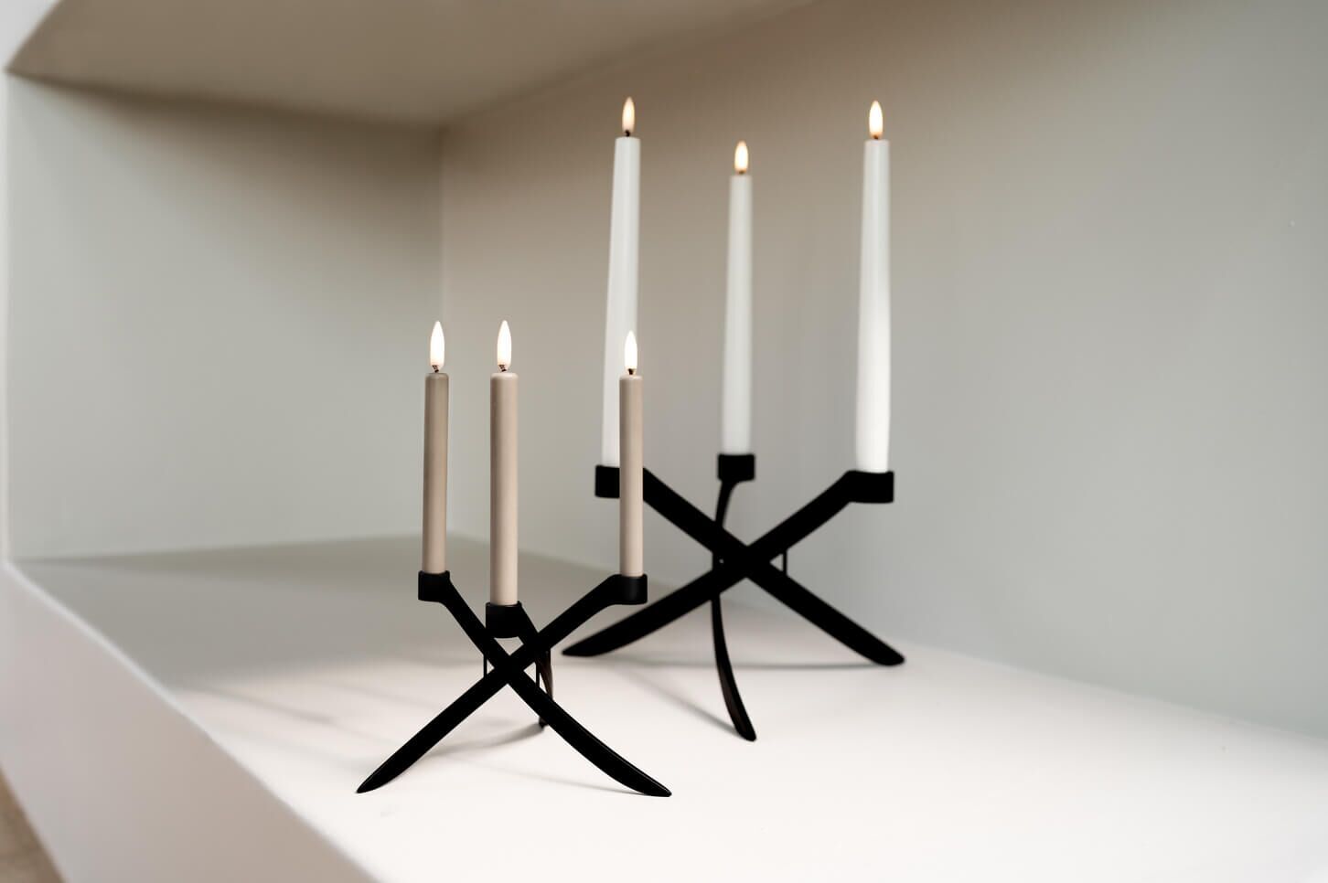 Erleben Sie Kerzen in einem neuen Licht mit "LightArch". Ein kreatives Meisterwerk, das 3 glatte Kerzenhalterarme miteinander verschmilzt, um eine Lagerfeuer-Atmosphäre zu erschaffen. Die einzigartige Struktur ist so gestaltet, dass zusätzliche Arme hinzugefügt werden können, um entweder die Größe Ihres "Lagerfeuers" zu erhöhen oder seine Form insgesamt zu ändern. LightArch ist eine Sammlung einzelner Kerzenständerbögen, die auf verschiedene Weise perfekt zusammenpassen und so ein wunderschönes, einzigartiges Kerzenständerarrangement ergeben. Jederzeit können weitere Ständerbögen hinzugefügt werden, um diesen besonderen Kerzenständer Ihren Wünschen anzupassen.