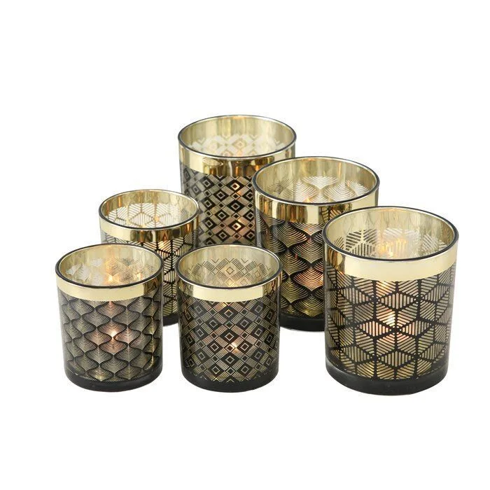 Dieses elegante Windlicht verleiht Ihrem Wohnzimmer oder Eingangsbereich pure Gemütlichkeit. Mit seinem stilvollen Muster und der edlen Farbgebung sorgt es sofort für einen tollen Blickfang. Windlicht Oliver ist aus Glas gefertigt und eignet sich für kleine Stumpenkerzen oder Teelichter. Es ist in drei Designs und jeweils zwei Größen erhältlich. Farbe: schwarz/goldMaterial: GlasHöhe: 8cmDurchmesser: 7cmDesign 3